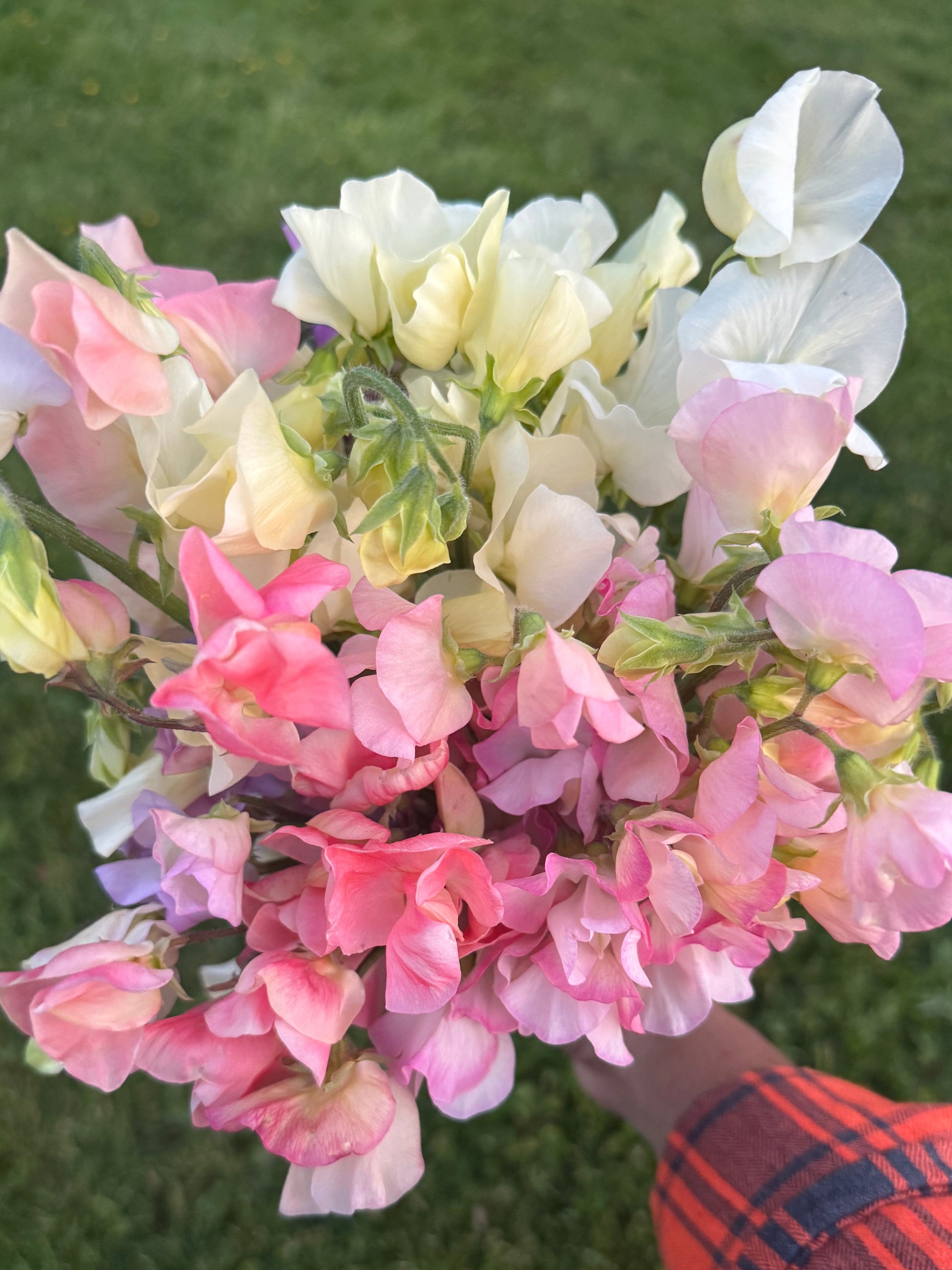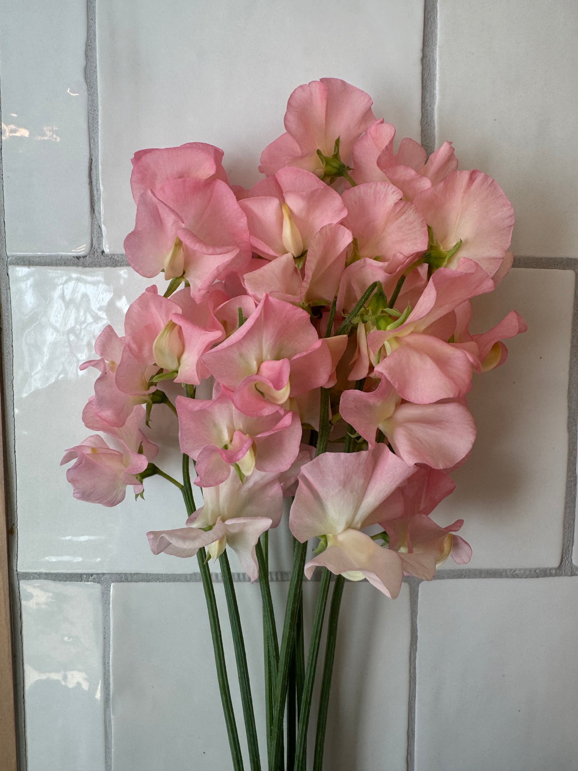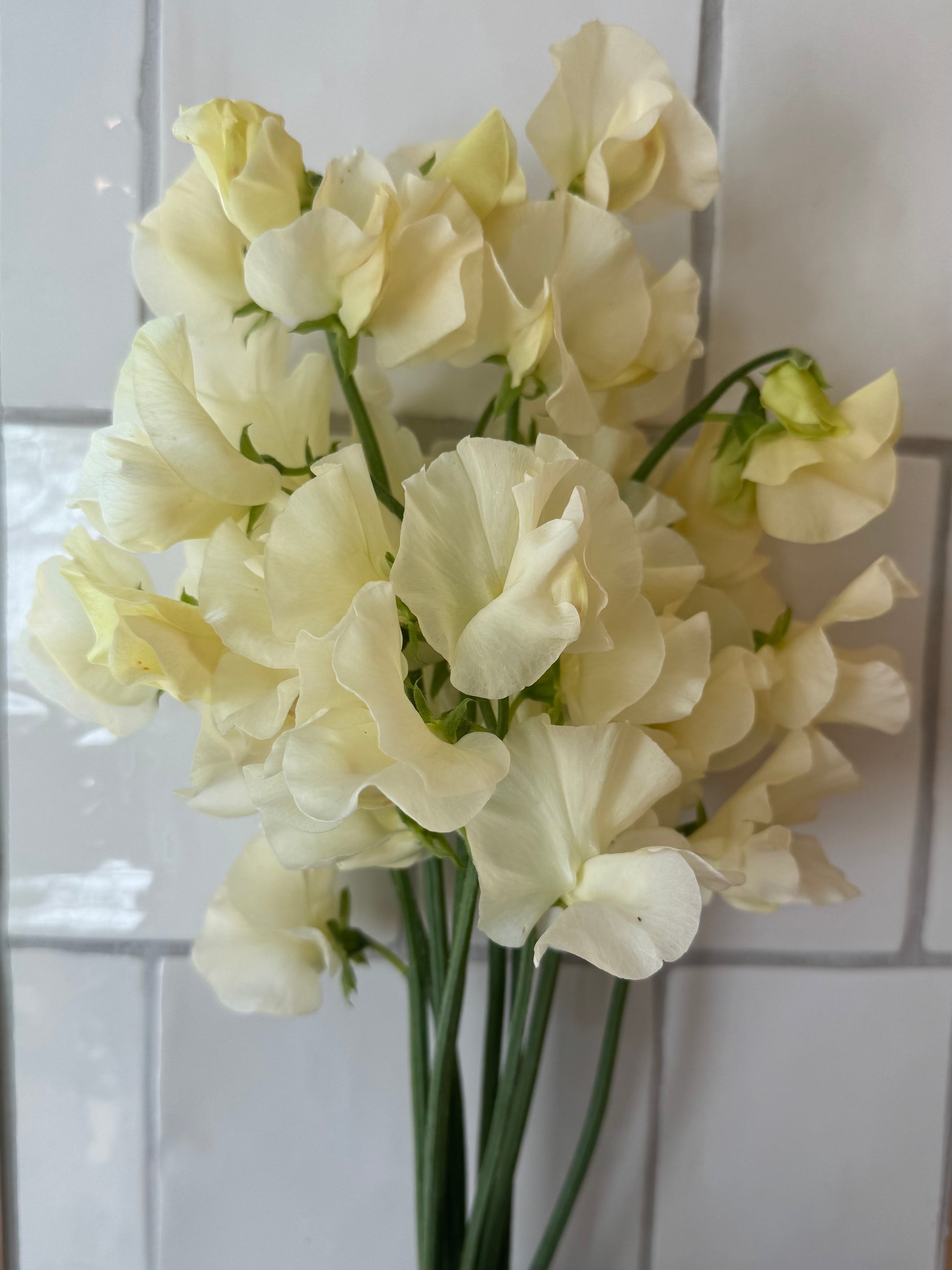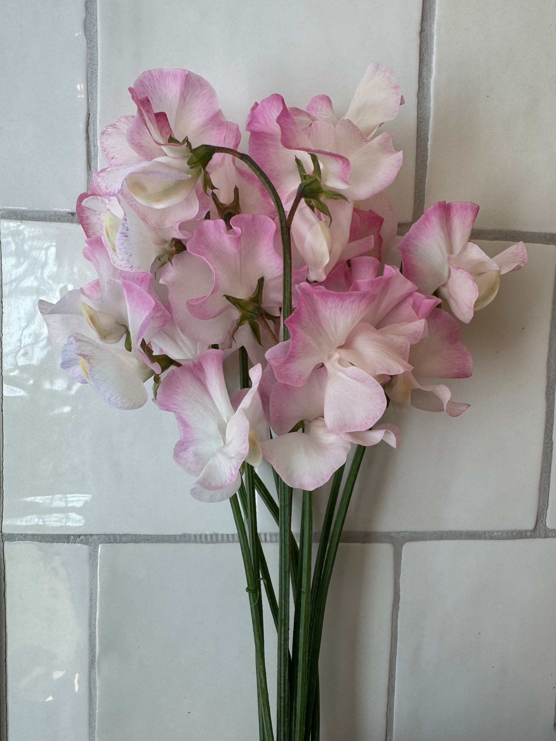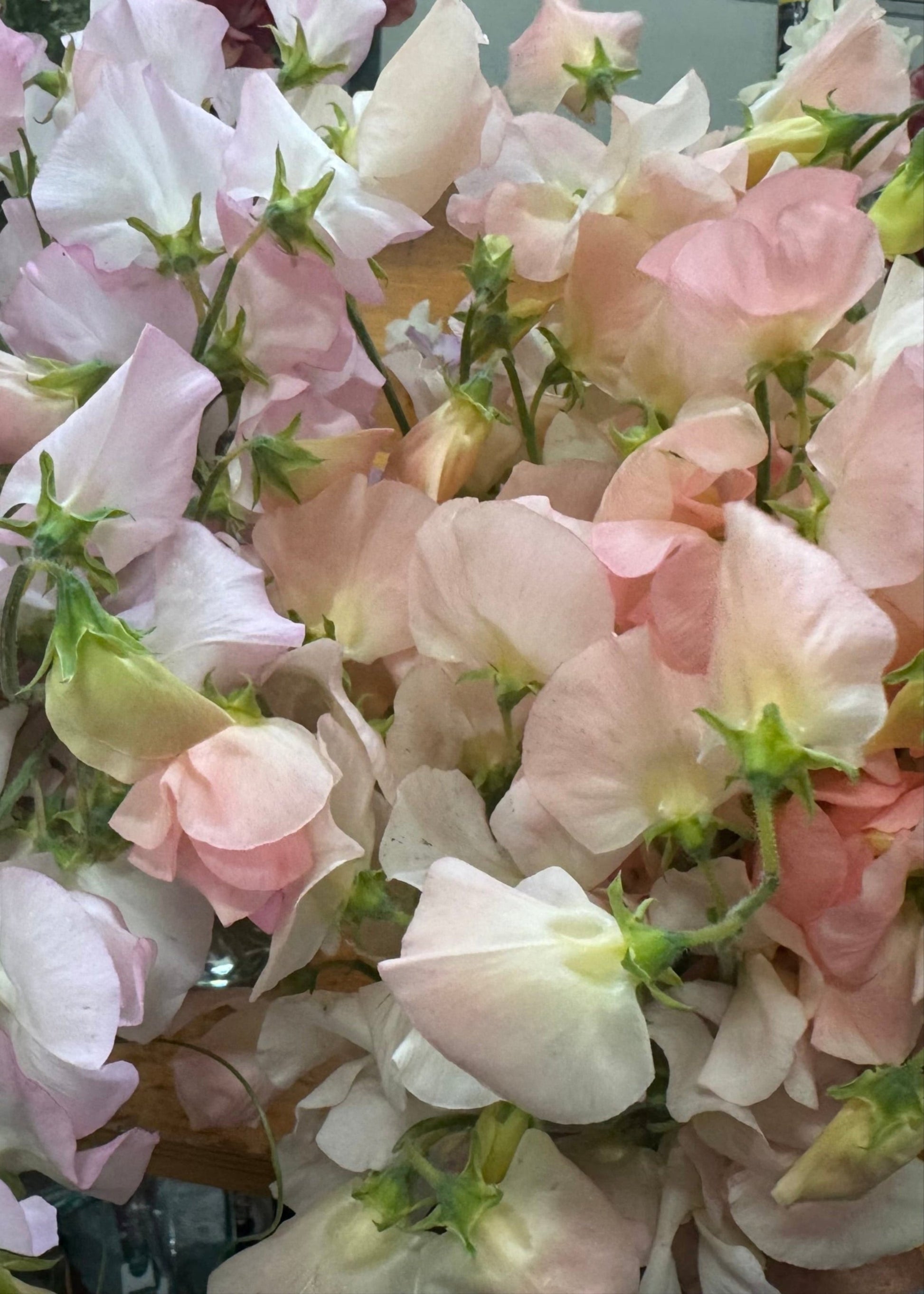 Local Designers buy Sweet Pea Stems from Half Moon's Farm. This is a Half Moon's Farm mix of the earliest blooming, long-stemmed varieties most requested for 2025 design work.