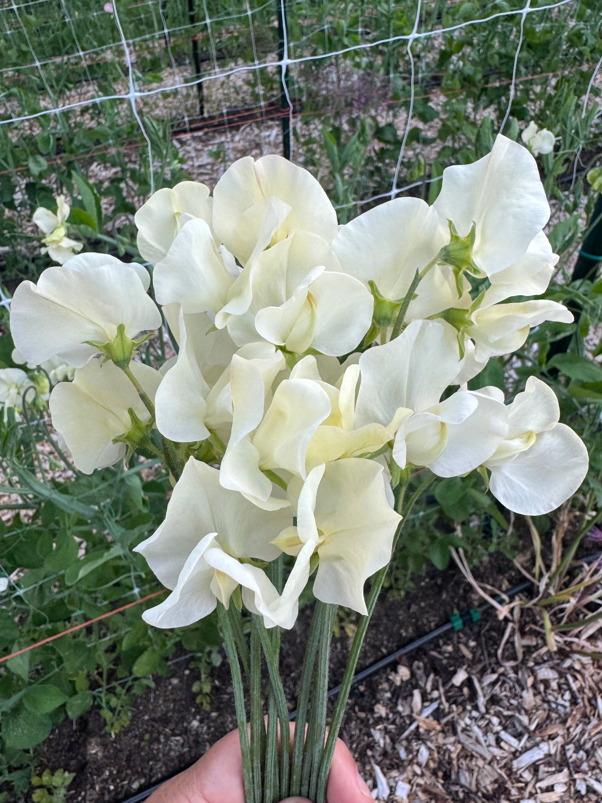 Creamy white blooms on long, strong stems. Requested often for design work.